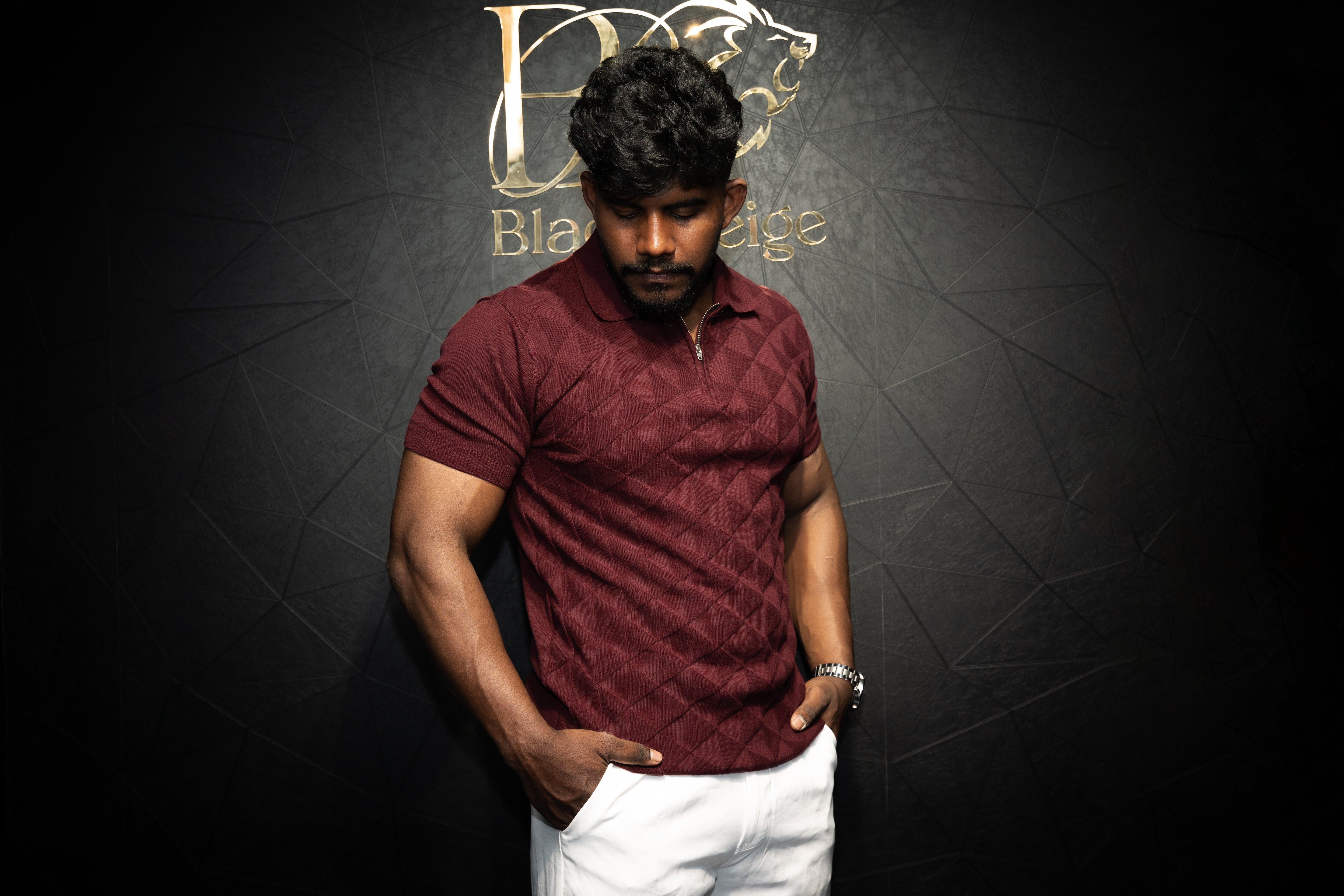 - Premium Textured Polo T shirt with Zip | Pure cotton | Half sleeve | Maroon Premium Textured Polo T shirt with Zip | Pure cotton | Half sleeve | Maroon